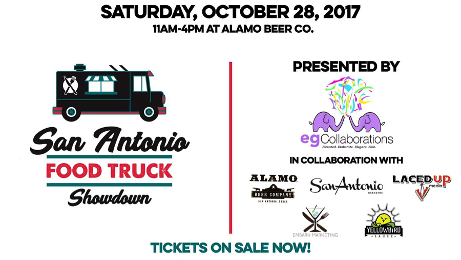 Sampling and voting for your favorite trucks will take place between 11-4PM, with winners announced around 4:30PM. 1st Place will win a Media Package worth $3000, including a 30-second promo video shot, edited, and produced by Lace Up Media, a photo shoot package by EmbarkMarketing, $500 in San Antonio Magazine's Eat + Drink Section, plus a $300 cash prize! For other vendor and sponsorship opportunities please email Erica Garcia at erica@egcollaborations.com