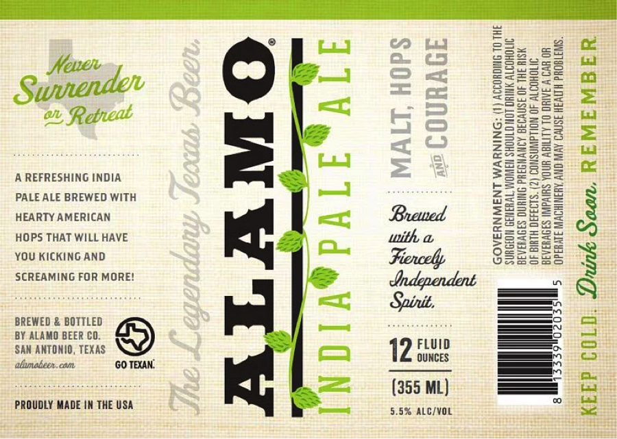 ALAMO Summer Ale is brewed with Hallertauer and Czech Saaz hops and serves well ice cold. Brew Master, James Hudec, describes the beer as ”easy drinking German-style ale,” also noting, “the Cologne yeast adds a floral, peppery aroma and the Czech hops are powerful and spicy.” Hudec concludes that, “the creamy, white head looks like ice cream in the hot August sun.” Consumers should expect a light, crisp and crushable beer, perfect for our summer season.