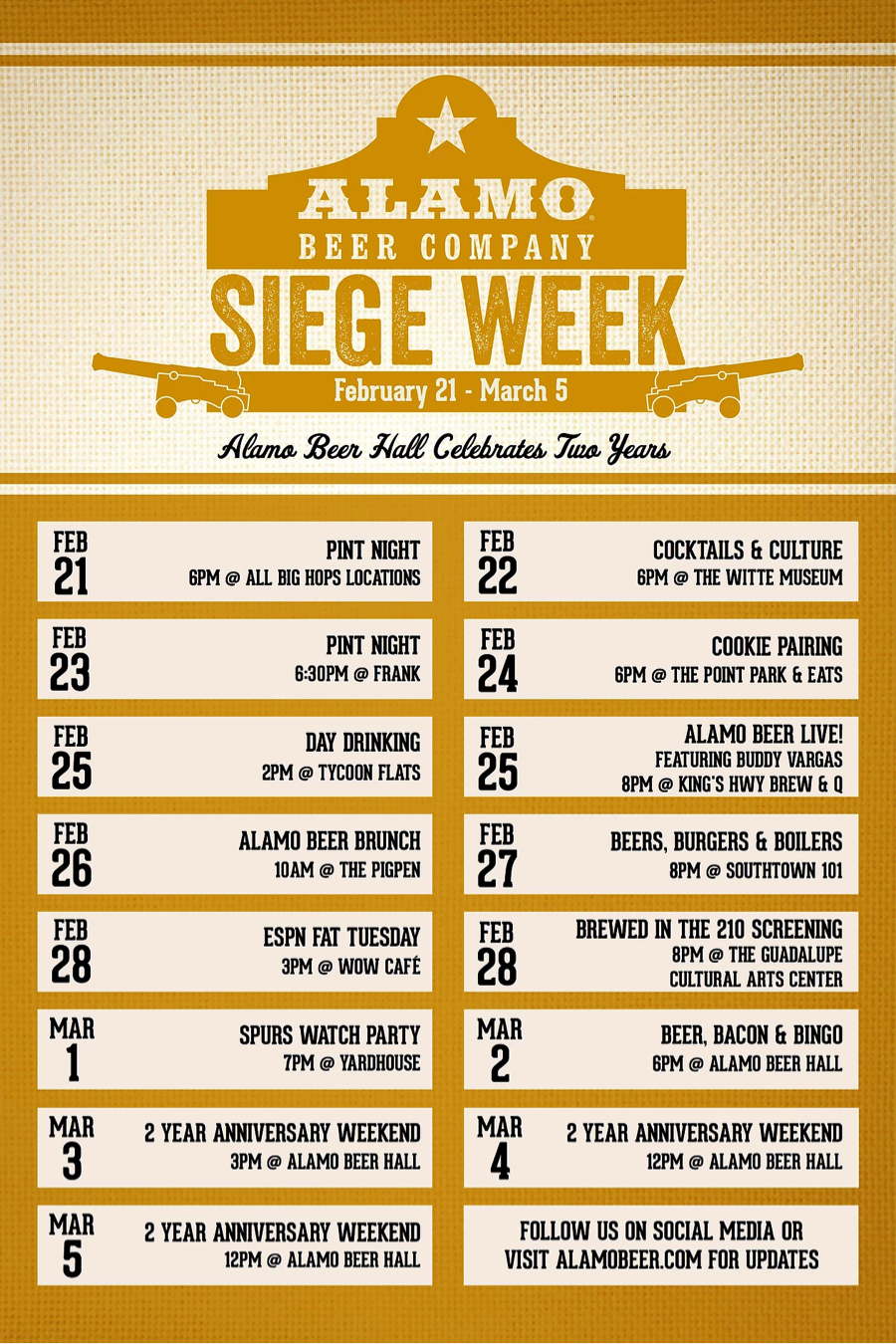Visit alamobeer.com/siegeweek2016 for further details. Information is also available via facebook.com/alamobeerco or at twitter.com/alamobeerco.